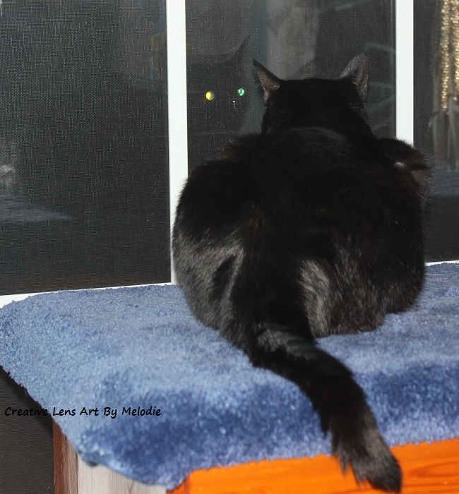 Whose black cat sits at my window.